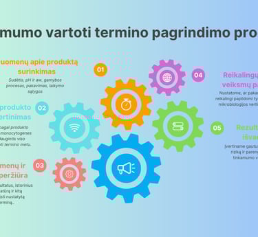Teikiame pagalbą nustatant naujų arba jau gaminamų produktų galiojimo terminą, peržiūrime turimą informaciją, padedame įvertinti, ar pakanka turimų duomenų, ir rekomenduojame, kokie papildomi veiksmai reikalingi. Prireikus padedame pasirengti laboratoriniams tyrimams, iššūkio tyrimams, tinkamumo vartoti termino nustatymo studijoms ar kitam pagrindimui.